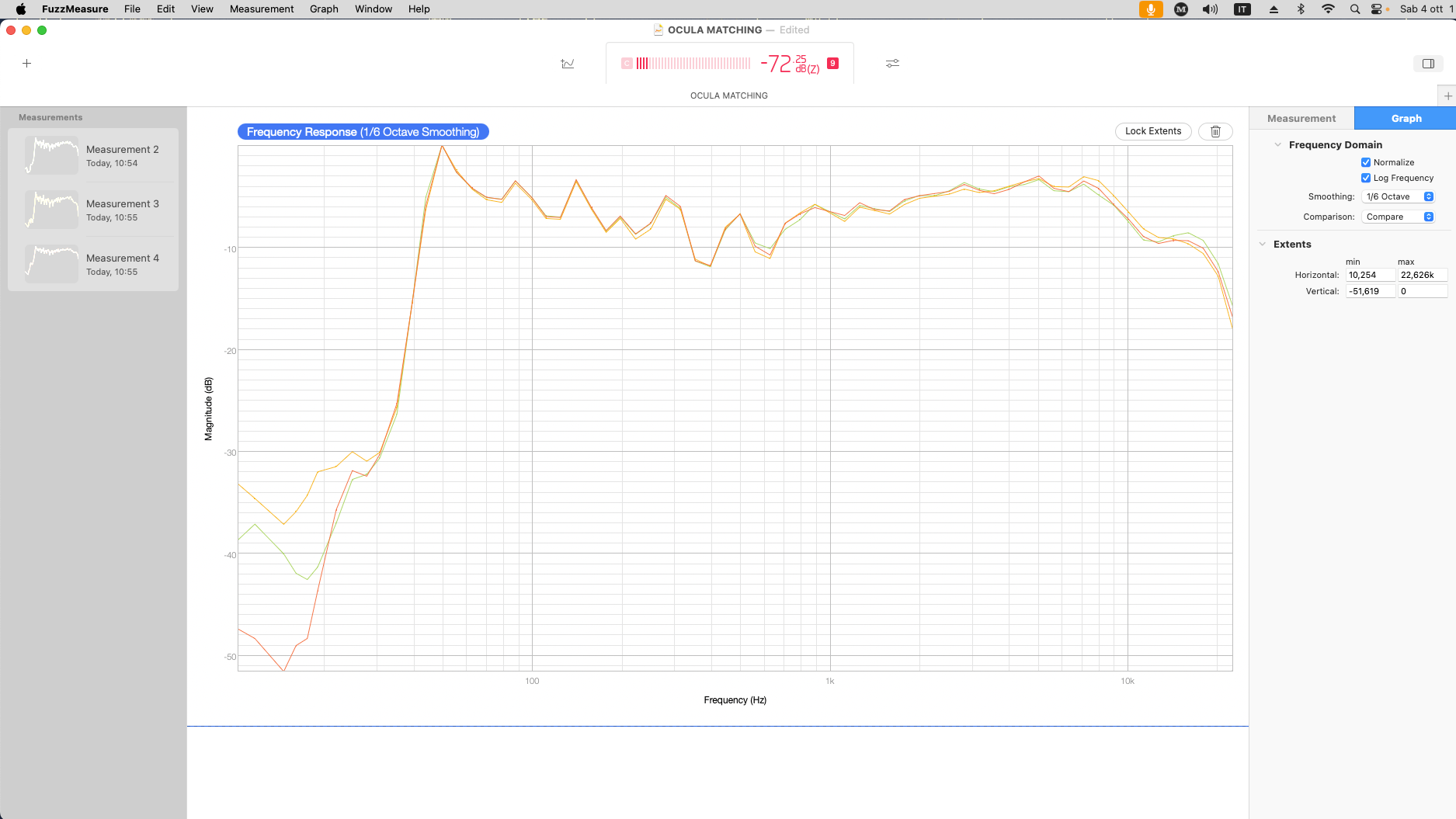 Finally i wanted to show how i perform the matching process and how close a matched trio of OCULA can be. Below a frequency response of a matched trio candidate. The +/- 0.5dB broadband tolerance stated in the published tech. specs is accomplished.